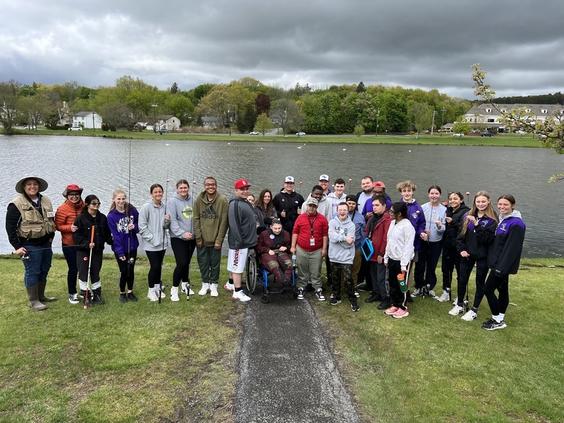 Students from the MWHS unified physical education classes recently completed their first-ever fishing unit. Their culminating activity included a fishing adventure at Airplane Park in Monroe, where they were joined by members of the MWHS Athletic Club and special visitors from central office. In total, 26 Unified Students and 16 members of the Athletic Club reeled in 37 fish throughout the day. Well done!