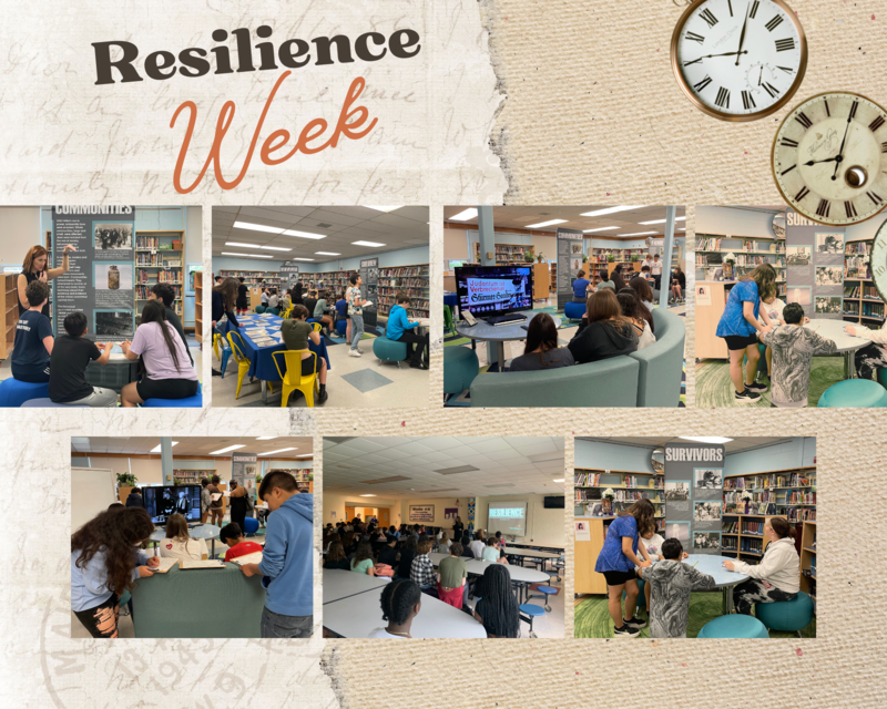 ● 8th grade students interacted with an exhibit in the MS library on resilience during the Holocaust.