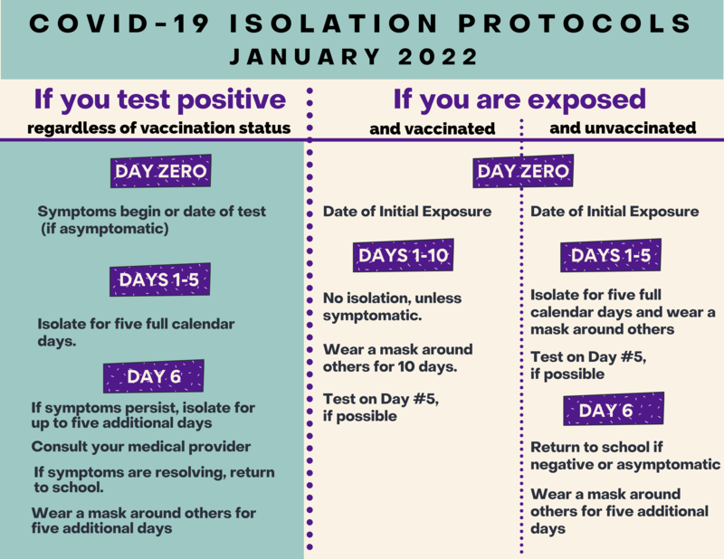 Earlier this week, I sent out a communication regarding the updated isolation protocols for schools. I shared more details at last night’s Board of Education meeting, which may be viewed on the district’s YouTube channel at https://youtu.be/mUcK67hoYgg. Below is a chart that summarizes the changes.