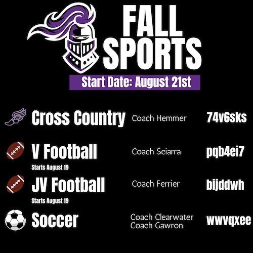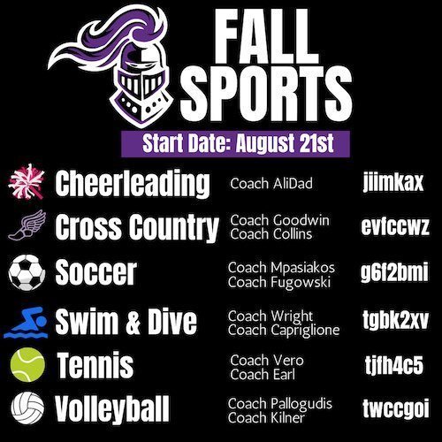 Fall sports registration for varsity and JV sports opens Monday, July 17 at 2 pm and closes at midnight on Thursday, August 17, 2023. The first day for Fall sports is Monday, August 21. Students who wish to participate should: