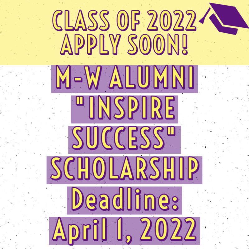 M-W Alumni Inspire Success Scholarship application - https://forms.gle/gZfr4GdDLmGdb3oW7