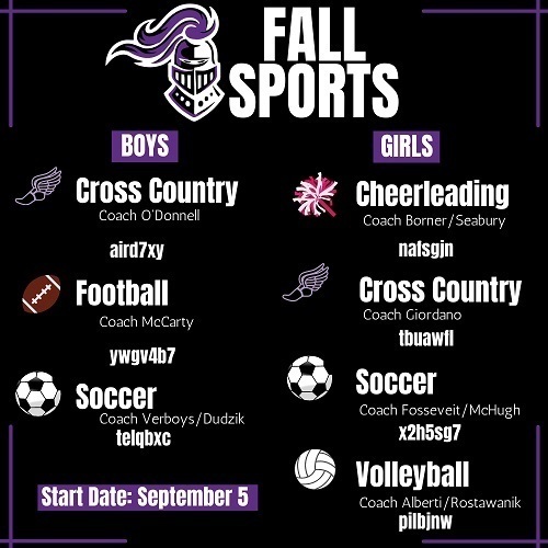 Middle School (Modified) fall sports registration will open at 2pm on Saturday, August 5, 2023 and will close at midnight on Tuesday, September 5, 2023. Modified fall sports begin on the first day of school, Tuesday, September 5.