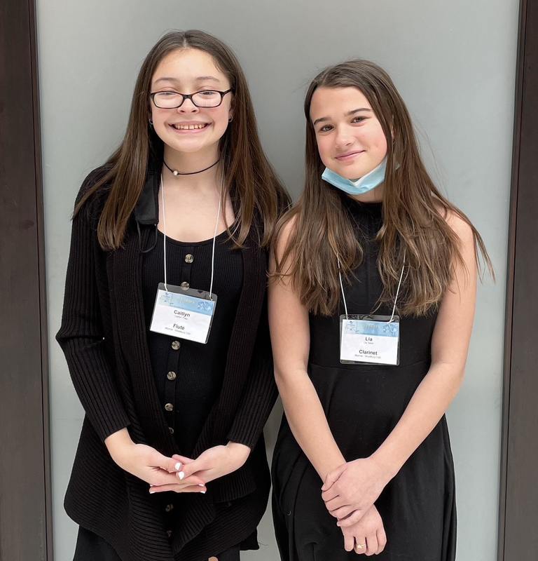 Monroe-Woodbury 8th graders Caitlyn Thau (flute) and Lia Taber (clarinet), left to right, recently performed with the New York State Band Directors' Association Honor Band in Syracuse, NY. This ensemble is composed of the top Middle School band students in New York State.