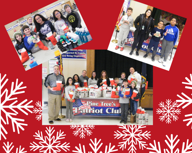 Members of Pine Tree's Patriot Club along with Pine Tree staff gathered to stuff 80+ stockings with goodies to be delivered to enlisted men and women in time for Christmas. Members of the Monroe-Woodbury school community donated items such as toiletries, candy, playing cards and more to help bring a little holiday spirit to those serving in the military.